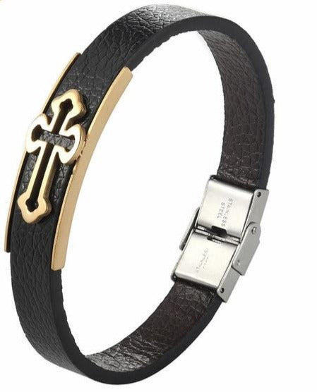 Bold Christian Cross Leather Cuff Bracelet