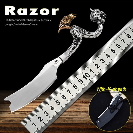 D2 Fixed Razor Stainless Steel Handle Skull Head & Crow Hunting Knife Survival Camping Shaving Tool