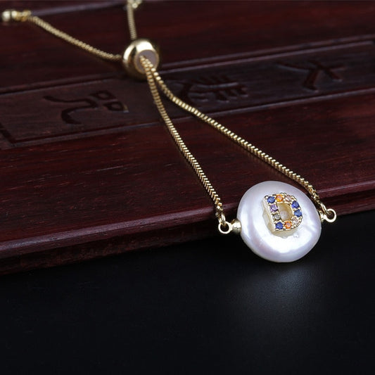 Rainbow Name Initial on Freshwater Pearl Bracelet