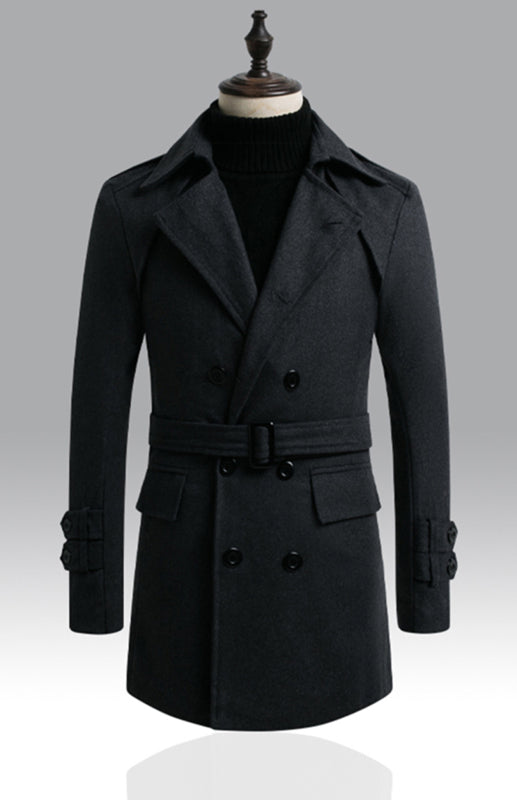 Men's Double Breasted Jacket Slim Long Trench Coat