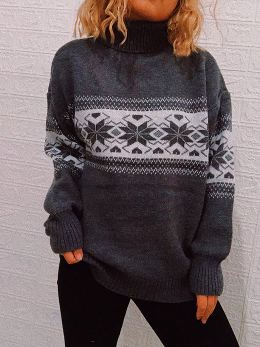 Women's Vintage Snowflake Turtleneck Long Sleeve Christmas Sweater Pullover